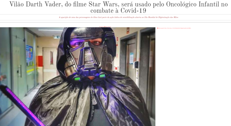 Portal Santarém – Vilão Darth Vader, do filme Star Wars, será usado pelo Hospital Oncológico Infantil no combate à Covid-19
