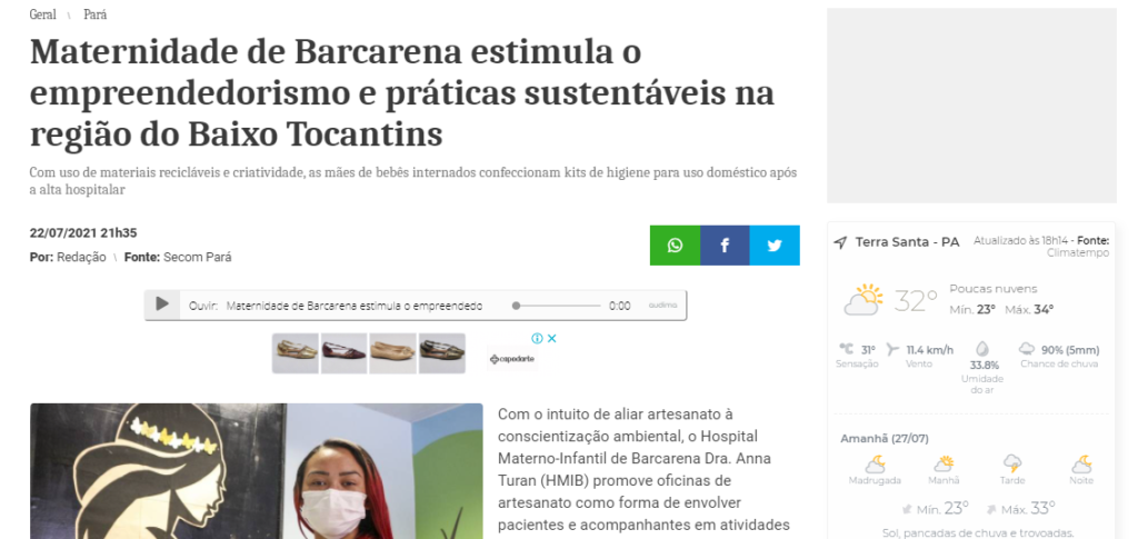 Portal Terra Santa Notícias – Maternidade de Barcarena estimula o empreendedorismo e práticas sustentáveis na região do Baixo Tocantins