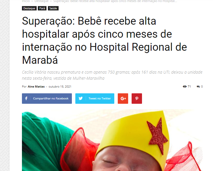 Portal Vanguarda – Superação: Bebê recebe alta hospital após cincos meses de internação no Hospital Regional de Marabá