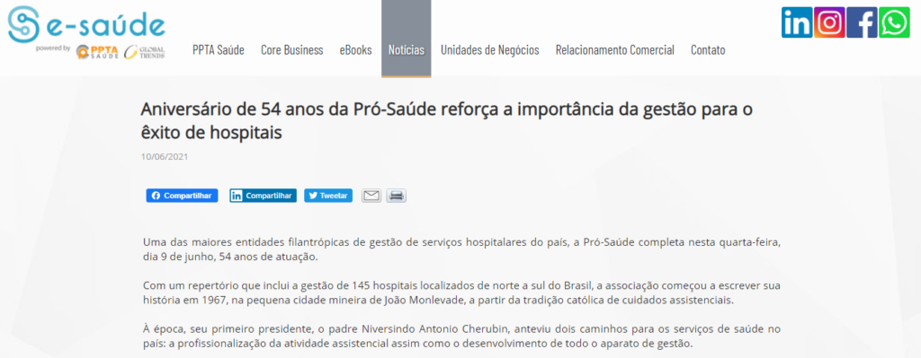 PPTA Saúde – Aniversário de 54 anos da Pró-Saúde reforça a importância da gestão para o êxito de hospitais