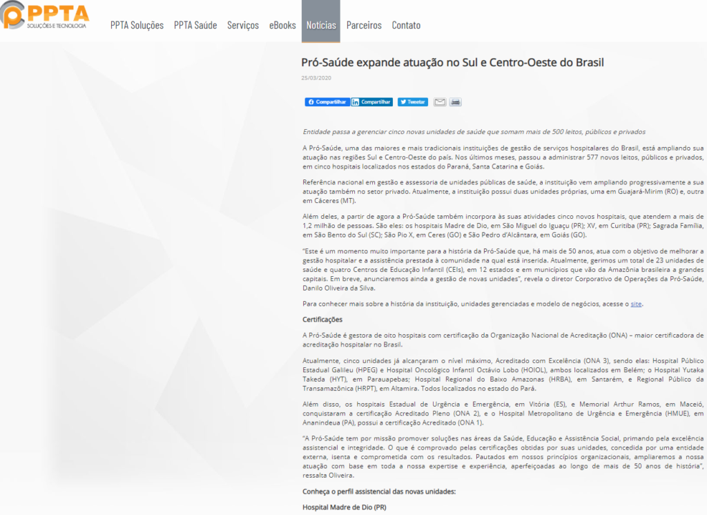 PPTA Saúde – Pró-Saúde expande atuação no Sul e Centro-Oeste do Brasil