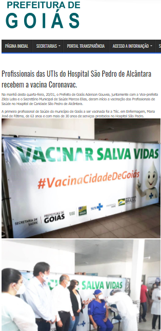 Prefeitura de Goiás – Profissionais das UTIs do Hospital São Pedro de Alcântara recebem a vacina Coronavac