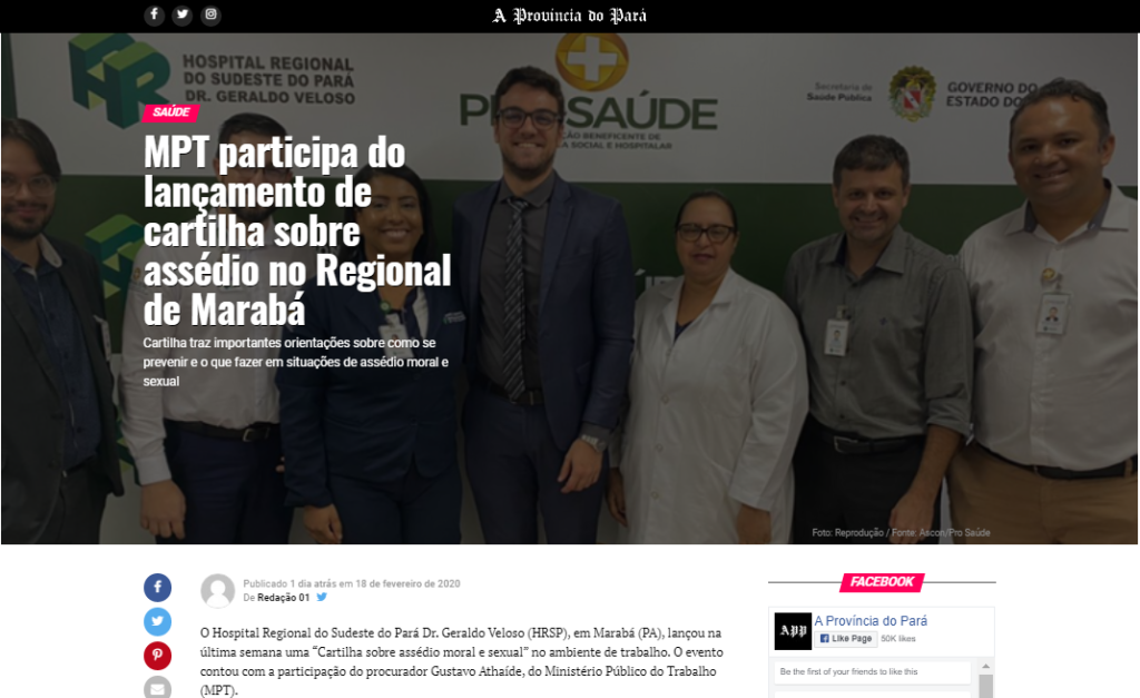 Província do Pará – Hospital Regional do Sudeste do Pará lança cartilha sobre assédio com participação do Ministério Público do Trabalho