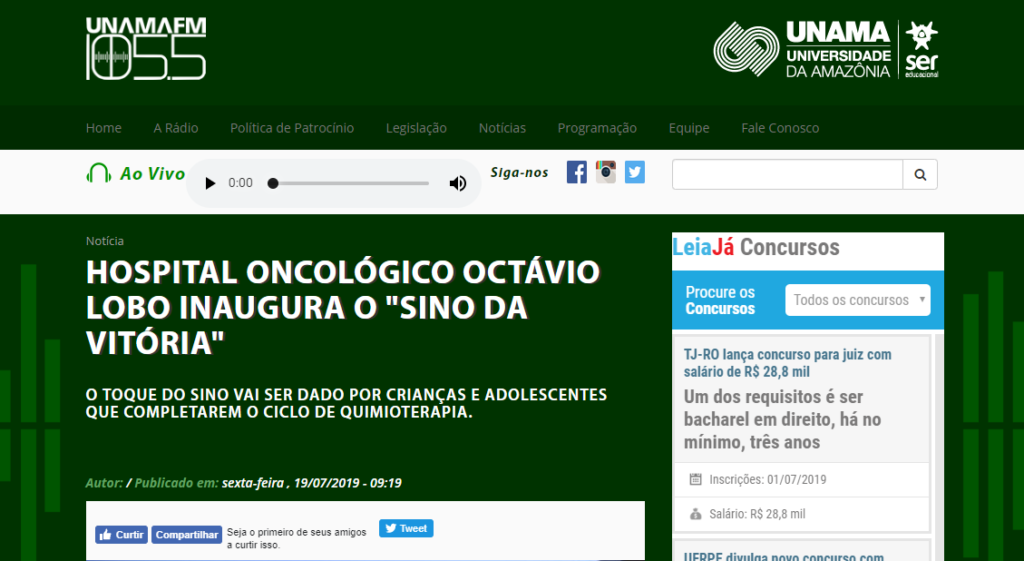 Rádio Unama – Hospital Oncológico Octávio Lobo inaugura o “Sino da Vitória”