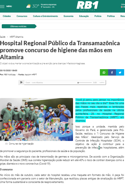 RB1 Notícias – Hospital Regional da Transamazônica promove concurso educativo de higienização das mãos