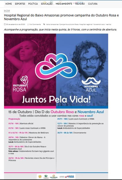 RD Notícias – Hospital Regional do Baixo Amazonas inicia a campanha “Juntos Pela Vida” do Outubro Rosa e Novembro Azul