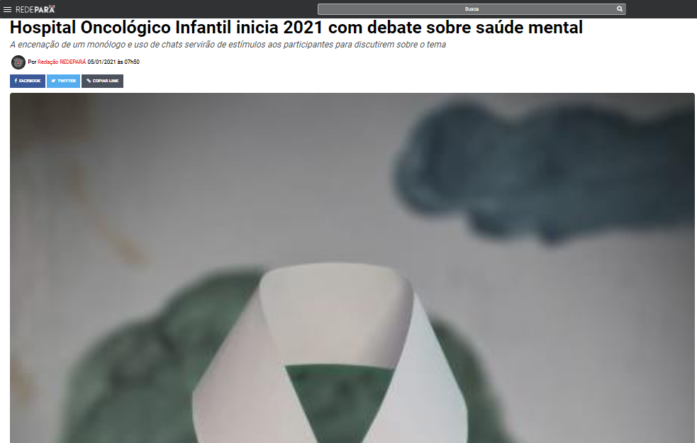 Rede Pará – Hospital Oncológico Infantil inicia 2021 com debate sobre saúde mental