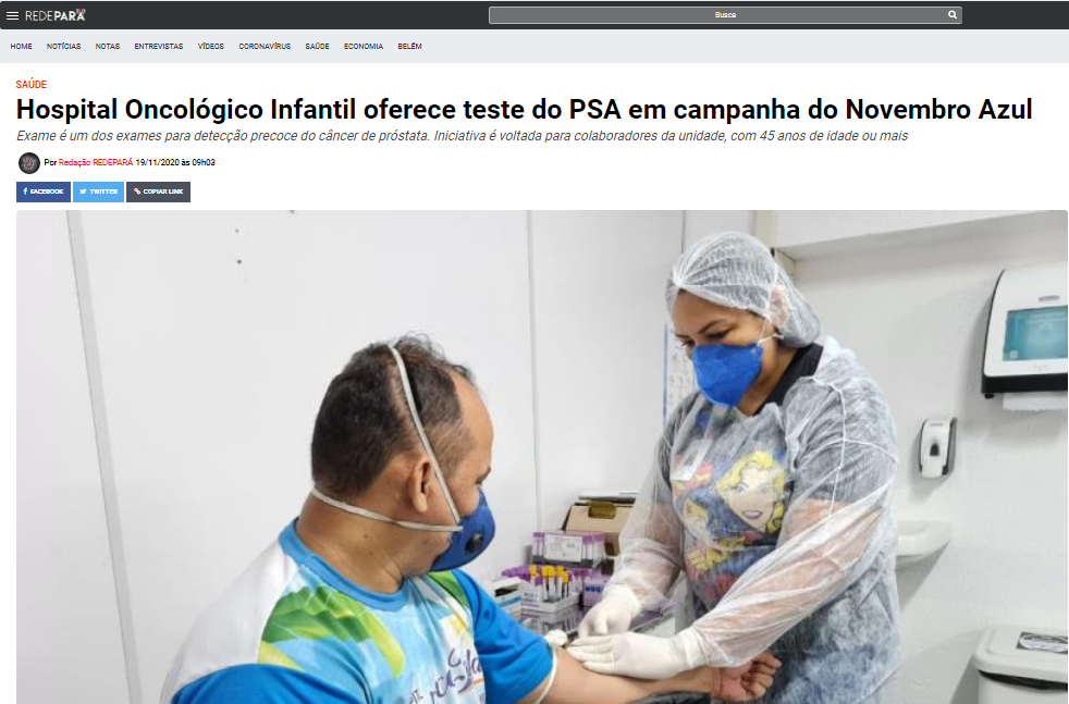Rede Pará – Hospital Oncológico Infantil oferece teste do PSA em campanha Novembro Azul