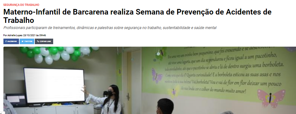 Rede Pará – Materno-Infantil de Barcarena realiza Semana de Prevenção de Acidentes de Trabalho