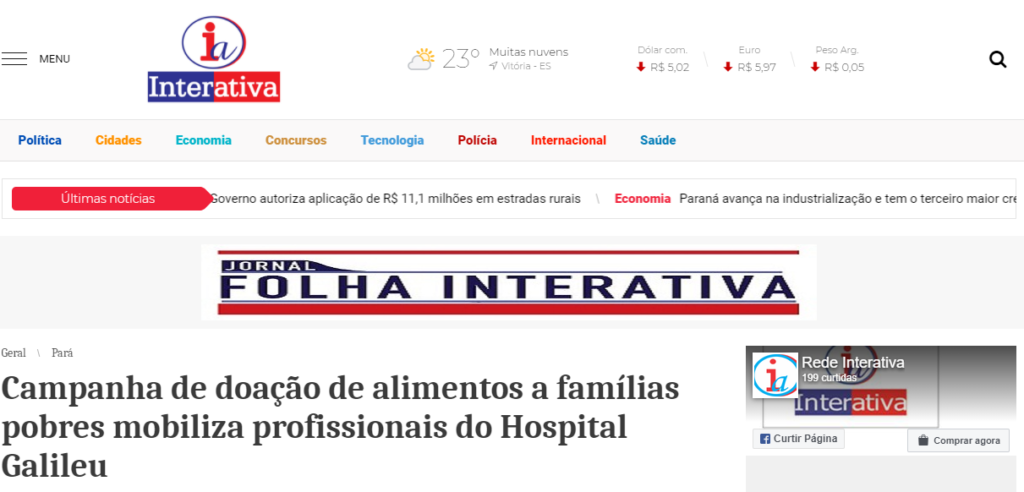 Revista Interativa – Campanha de doação de alimentos a famílias pobres mobiliza profissionais do Hospital Galileu