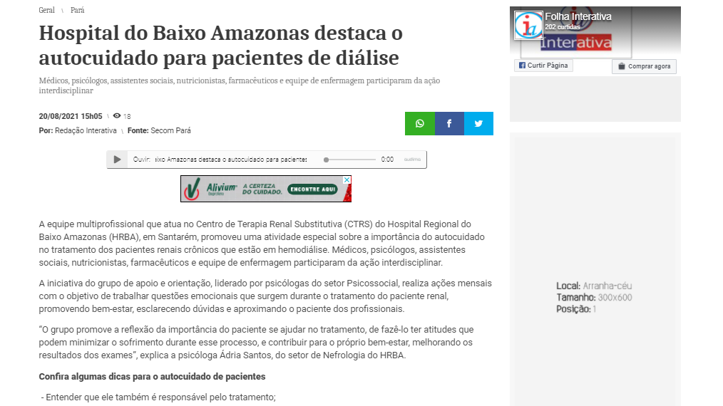 Revista Interativa – Hospital do Baixo Amazonas destaca o autocuidado para pacientes de diálise