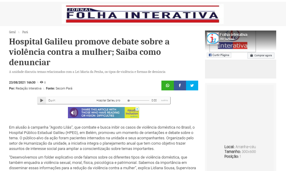 Revista Interativa – Hospital Galileu promove debate sobre a violência contra a mulher; saiba como denunciar