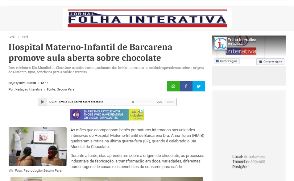 Revista Interativa – Hospital Materno-Infantil de Barcarena promove aula aberta sobre chocolate