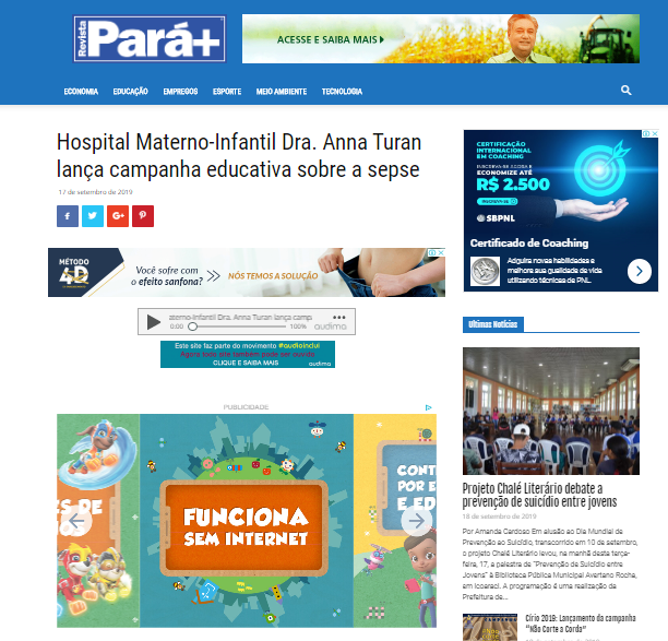 Revista Pará + – Hospital Materno-Infantil Dra. Anna Turan lança campanha educativa sobre a sepse