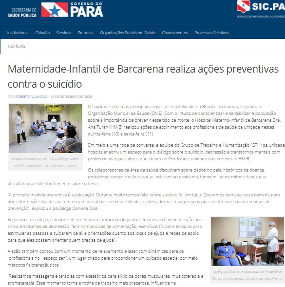 Secretaria de Saúde Pública – Governo do Pará – Hospital Materno-Infantil realiza ações de sensibilização no mês de prevenção ao suicídio