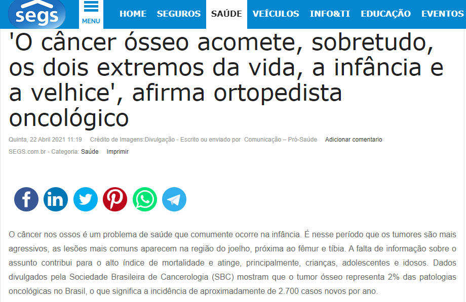 Segs – Hospital Oncológico Infantil alerta sobre o câncer