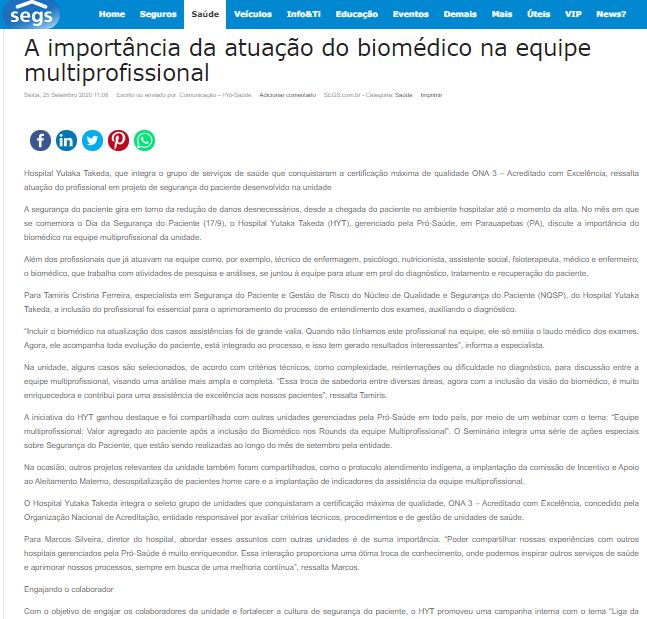 Segs – Hospital Yutaka Takeda destaca a importância da atuação do biomédico no ambiente hospitalar