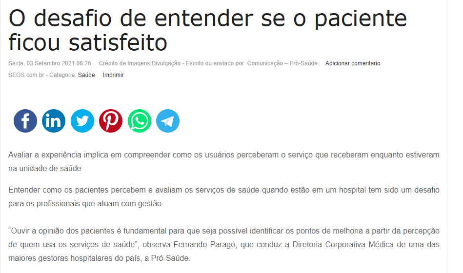 Segs – O desafio de entender se o paciente ficou satisfeito