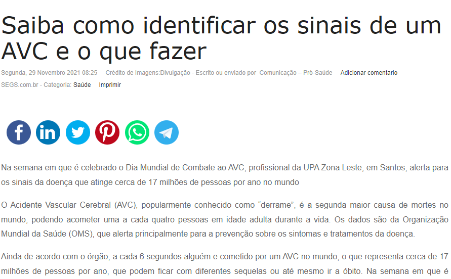 Segs – Saiba como identificar os sinais de um AVC e o que fazer