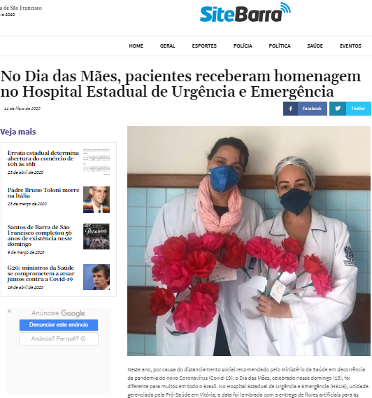 Site Barra – No Dias das Mães, Hospital Estadual de Urgência e Emergência homenageia pacientes com flores