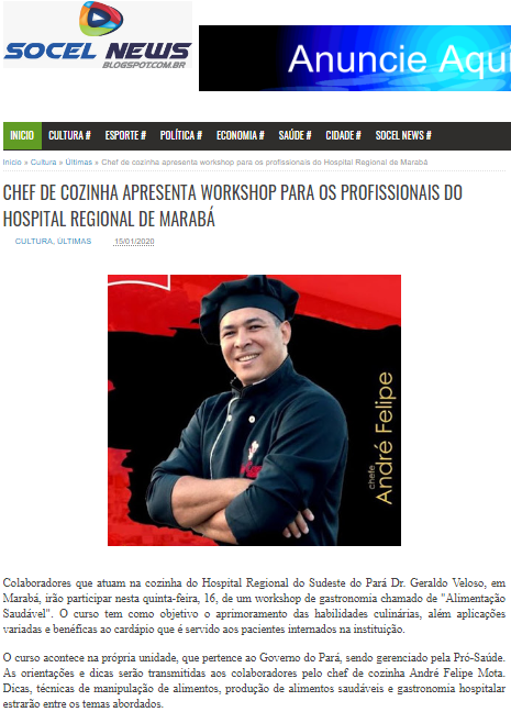 Socel News – Chefe de cozinha apresenta o workshop “Alimentação Saudável” para os profissionais do Hospital Regional do Sudeste do Pará