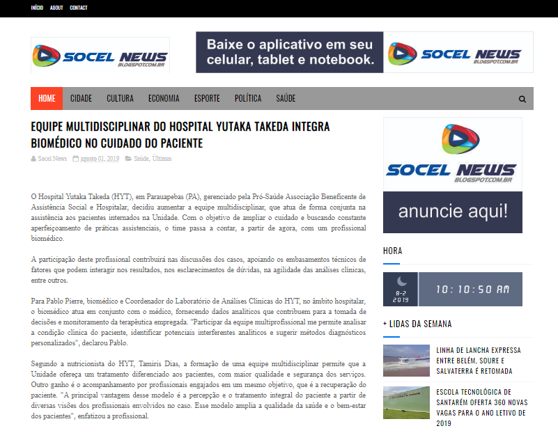 Socel News – Equipe multidisciplinar do Hospital Yutaka Takeda integra biomédico no cuidado do paciente