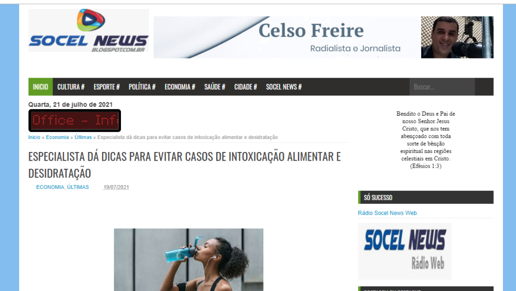 Socel News – Especialista dá dicas para evitar casos de intoxicação alimentar e desidratação