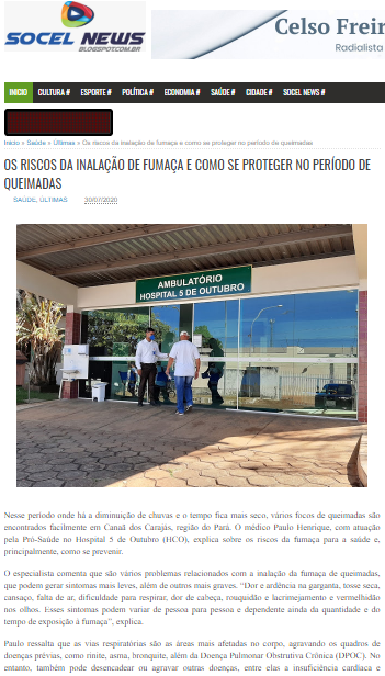 Socel News – Hospital Cinco de Outubro alerta para os riscos respiratórios no período de queimadas na região