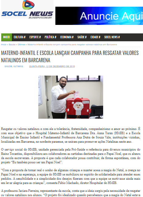 Socel News – Hospital Materno-Infantil lança campanha para incentivar valores natalinos em parceria com escola
