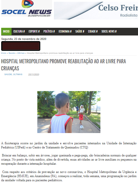 Socel News – Hospital Metropolitano desenvolve projeto de reabilitação ao ar livre para crianças e adolescentes