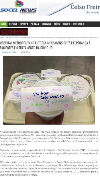 Socel News – Hospital Metropolitano entrega mensagens de fé e esperança a pacientes em tratamento da covid-19