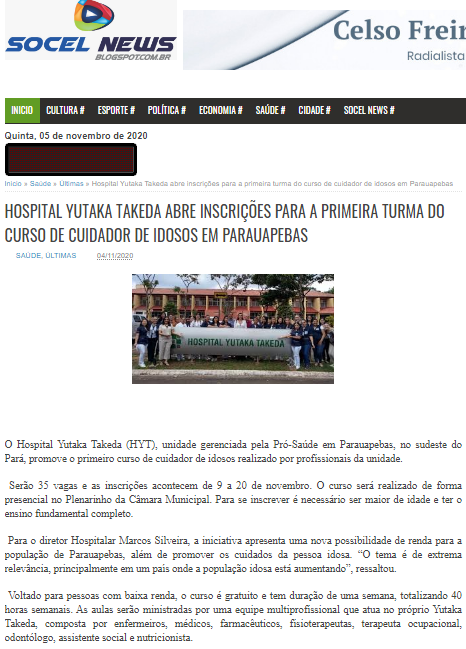 Socel News – Hospital Yutaka Takeda abre inscrições para primeira turma de curso de cuidador de idosos