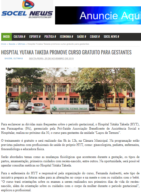 Socel News – Hospital Yutaka Takeda promove nova edição do curso gratuito para gestantes “laços de ternura”