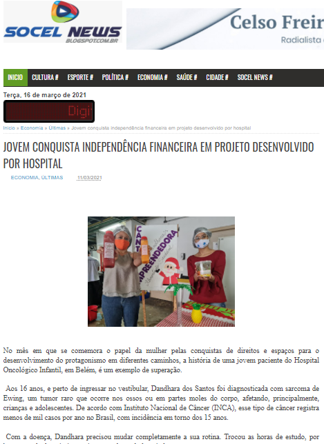 Socel News – Paciente do Hospital Oncológico Infantil conquista independência financeira com ajuda do projeto Canto da Empreendedora