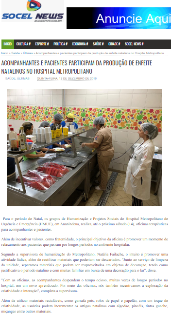 Socel News – Pacientes e acompanhantes produzem enfeites natalinos no Hospital Metropolitano