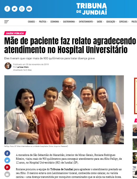 Tribuna de Jundiaí – Mãe agradece atendimento prestado no Hospital Universitário