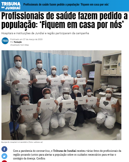 Tribuna de Jundiaí – Profissionais da Hospital Universitário fazem pedido a população: “Fiquem em casa por nós”