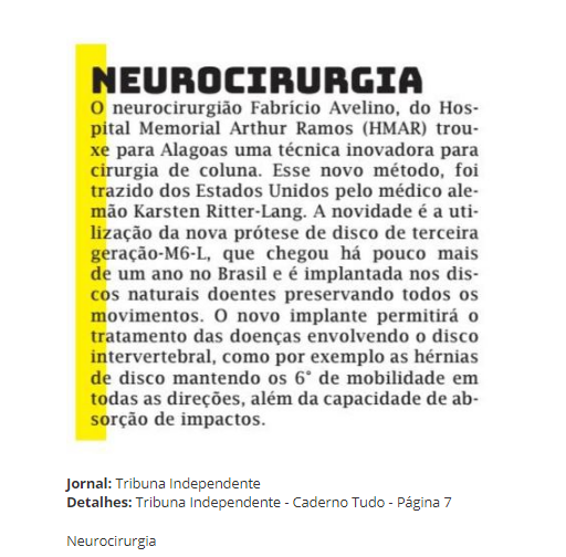 Tribuna Independente – Neurocirurgião do Hospital Memorial Arthur Ramos traz técnica inovadora para cirurgia de coluna