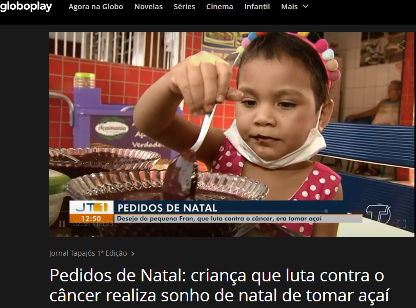 TV Tapajós, Jornal Tapajós – Pedidos de Natal: criança que luta contra o câncer realiza sonho de natal de tomar açaí