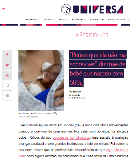 Universa UOL – “Pensei que ela não iria sobreviver”, diz mãe de bebê que nasceu com 560 g e de 5 meses no Hospital Universitário