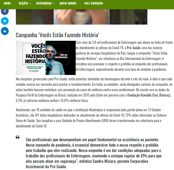 Vida em Ação – Pró-Saúde lança campanha de valorização dos profissionais de Enfermagem,.