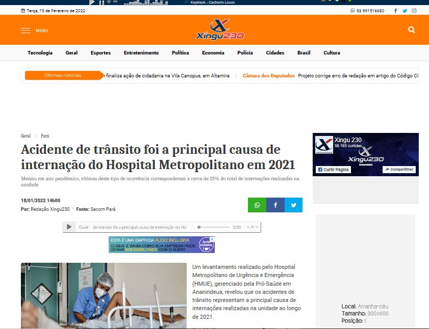 Xingu 230 – Acidente de trânsito foi a principal causa de internação do Hospital Metropolitano em 2021