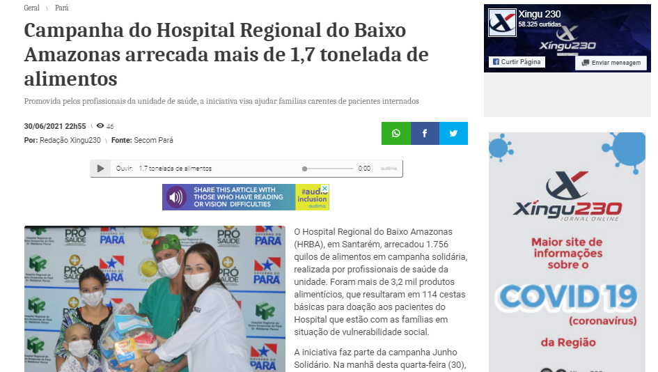Xingu 230 – Campanha do Hospital Regional do Baixo Amazonas arrecada mais de 1,7 tonelada de alimentos