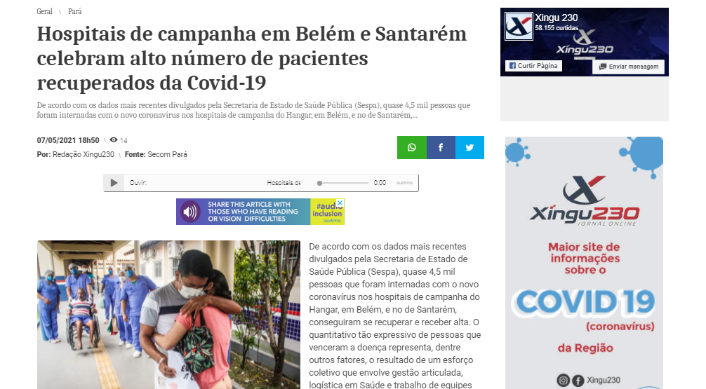 Xingu 230 – Hospital de Campanha do Hangar celebram alto número de pacientes recuperados da Covid-19