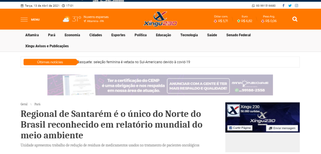 Xingu 230 – Hospital Regional do Baixo Amazonas é o único do Norte do Brasil reconhecido em relatório mundial do meio ambiente