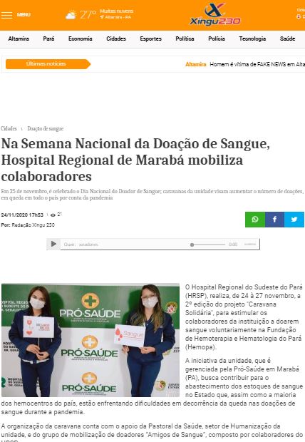 Xingu 230 – Hospital Regional do Sudeste do Pará mobiliza colaboradores em caravanas de doação de sangue