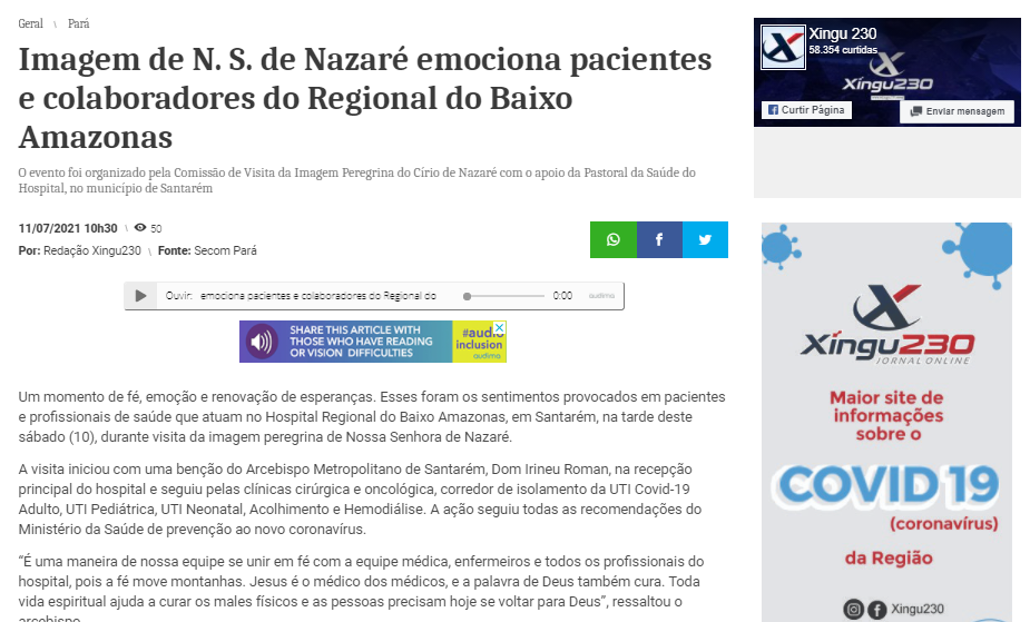 Xingu 230 – Imagem de N.S. de Nazaré emociona pacientes e colaboradores do Regional do Baixo Amazonas
