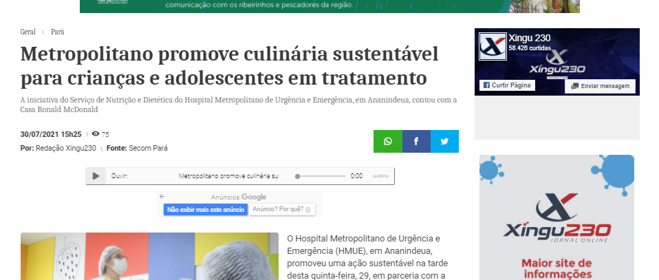 Xingu 230 – Metropolitano promove culinária sustentável para crianças e adolescentes em tratamento
