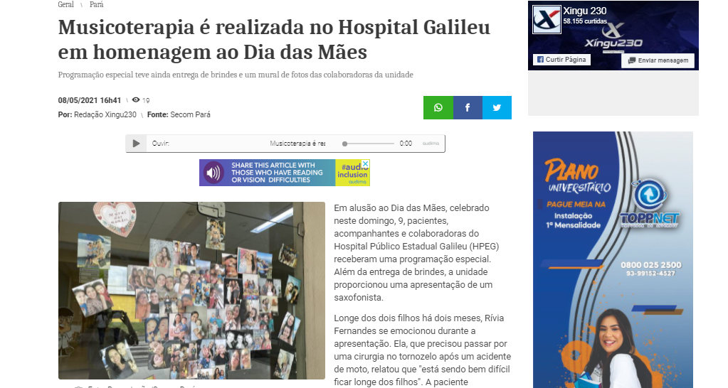 Xingu 230 – Musicoterapia é realizada no Hospital Galileu em homenagem ao Dia das Mães