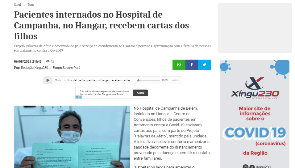 Xingu 230 – Pacientes internados no Hospital de Campanha, no Hangar recebem cartas dos filhos